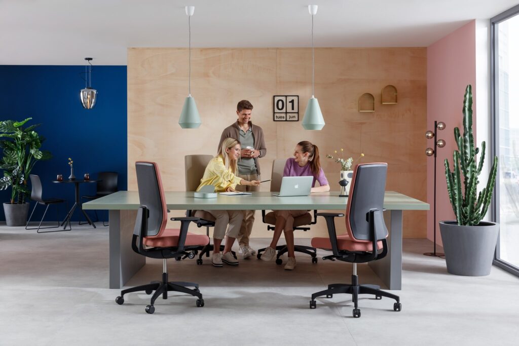 Wir sehen die Raumgestaltung als einen maßgeblichen Punkt, dass New Work Maßnahmen greifen können. Neu konzipierte Räume fördern aktiv die Kommunikation im Unternehmen. Außerdem unterstützen diese neuen Konzepte die Individualität der einzelnen Mitarbeiter*Innen – das wirkt sich wiederum auf die Zufriedenheit aus.