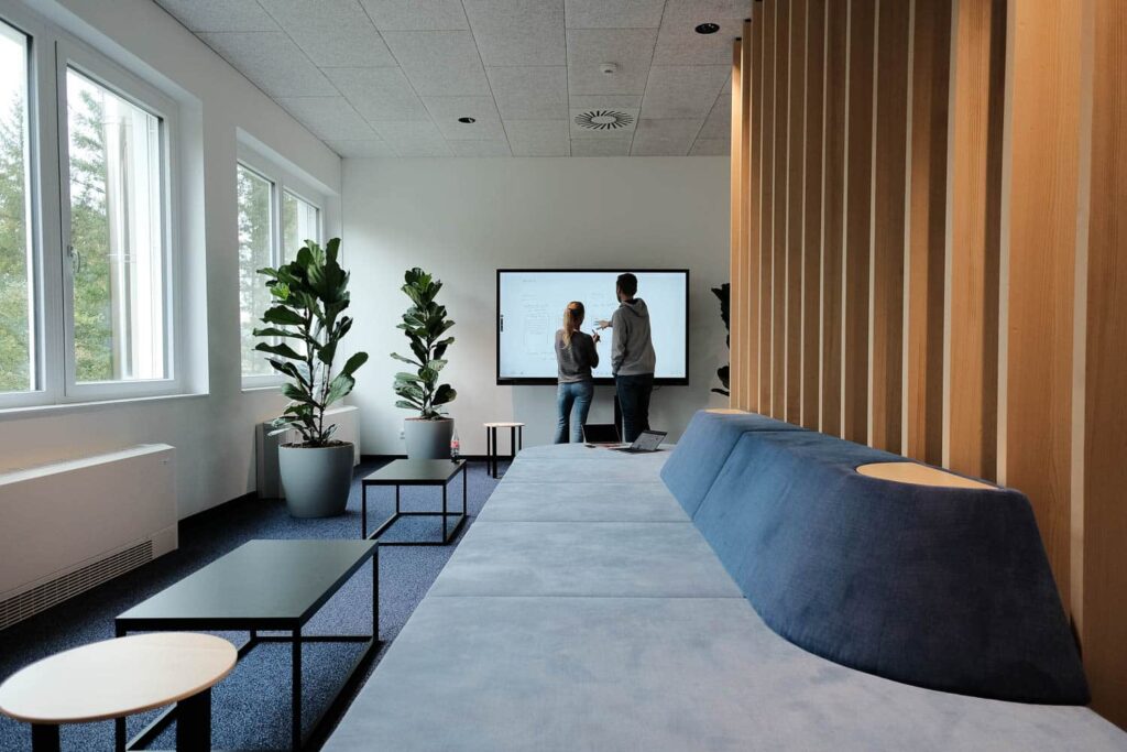 Aber auch Rückzugsorte und Zonen zur Entspannung dürfen im Büro der Zukunft nicht fehlen. Diese unterstützen in weiterer Folge ebenfalls die Leistung der Mitarbeiter*Innen. Andererseits dienen diese Zonen auch dazu, das Networking unter den Mitarbeiter*innen voranzutreiben. In erster Linie steht aber in diesen Bereichen die Entspannung an erster Stelle. Mehr dazu findest du in unserem Blogbeitrag „Relax – Platz zum Durchschnaufen“.