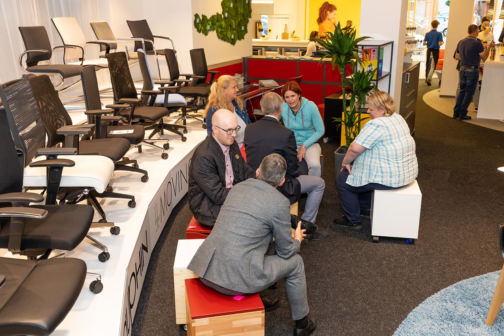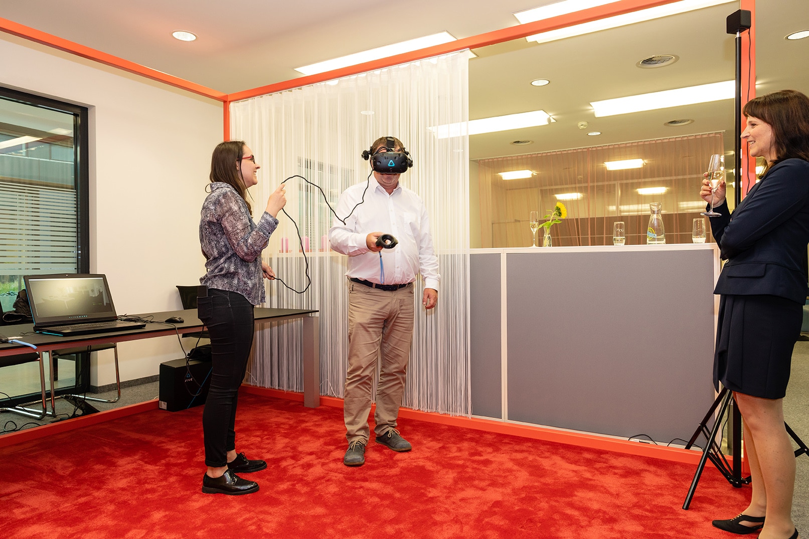 Neben der Besichtigung der neuen Arbeitszonen und Mittelbereiche gab es auch die Möglichkeit ein von hali geplantes Büro mittels VR-Brille zu begehen. Die VR-Brille, die von unserem Partner Dauphin zur Verfügung gestellt und betreut wurde, war ein absolutes Highlight.
