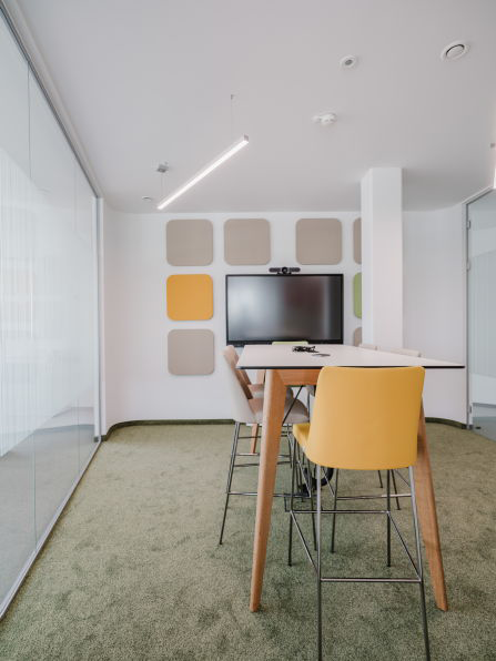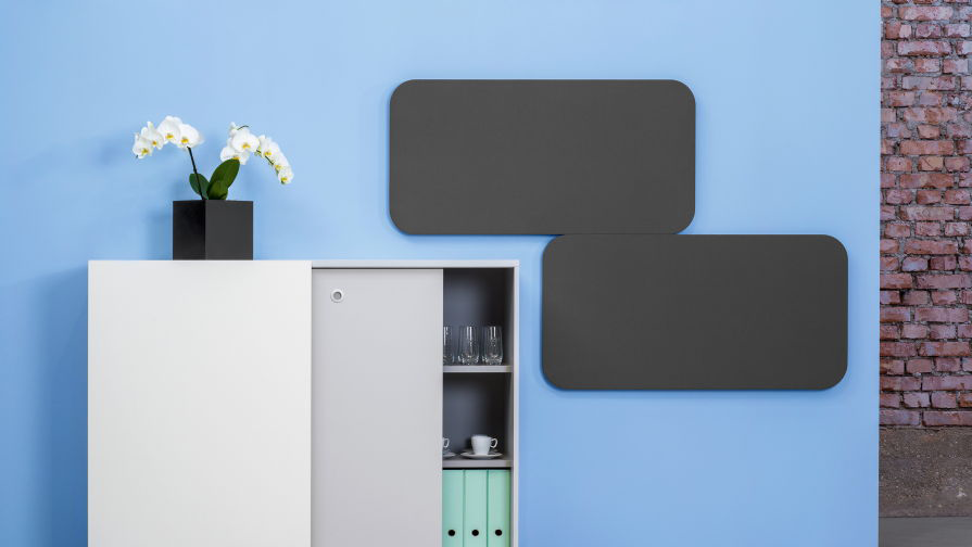 Das Wandpaneel Mute optimiert die Raumakustik und setzt stilvolle Akzente. Ideal für Besprechungsräume oder Open Spaces.