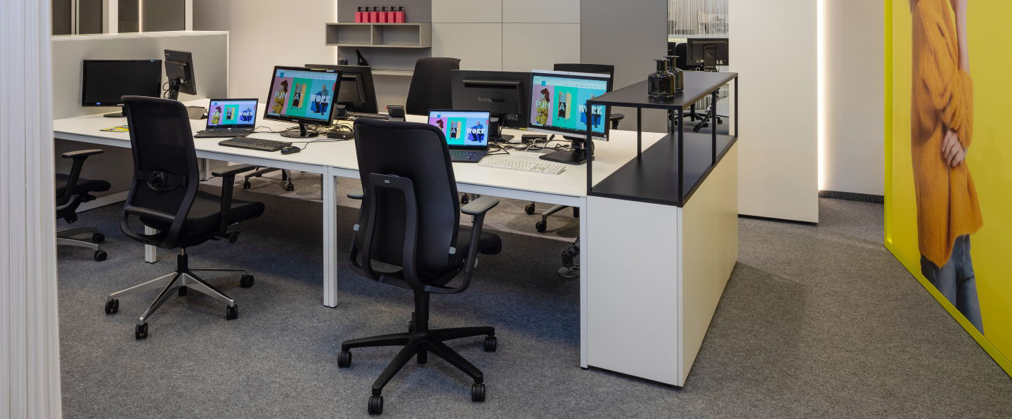 Von kleinen Büros für Einpersonenunternehmen bis hin zu Offices, die sich über mehrere Stockwerke ziehen: Wir wissen was du brauchst um motiviert und effektiv zu arbeiten. Ob einzelne Arbeitsplätze mit modernen Sitz-Steh-Tischen und Bildschirmen auf der perfekten Sichthöhe, oder repräsentativen Besprechungsräumen und gemütlichen Loungemöbel. Kontaktiere unsere Expert*innen für deine individuelle Lösung.