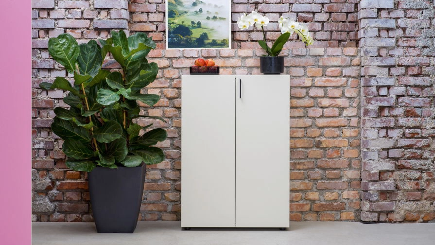 Der Box Drehtürenschrank kombiniert Ordnung und Funktionalität in einem Möbelstück. Mit unzähligen Ausstattungsvarianten passt er sich jedem Büro flexibel an und schafft Struktur mit Charakter.