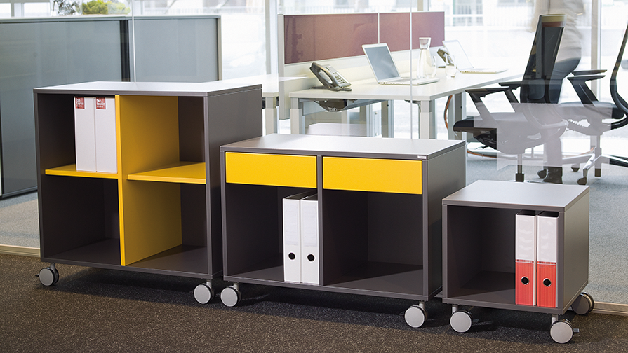 Bull02 ist dein schlanker Stauraum-Partner mit und ohne Laden – ideal für persönliche Utensilien direkt am Arbeitsplatz.