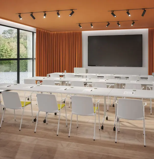 Was die Tischserie m500 vereint, sind die ovalen Tischbeine. Sie sorgen für eine klare, reduzierte Formgebung und sind in Schwarz, Grau und Weiß verfügbar. Dank der Kombination aus fixen und klappbaren Varianten bleibt dein Besprechungsraum flexibel und bereit für jede Aufgabe – vom Workshop bis zur spontanen Teamsession.