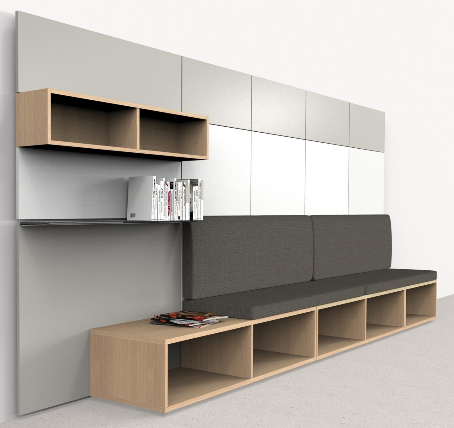 Dürfen wir noch mehr positive Eigenschaften vorstellen? Die Vorsatzwand von hali kann mit den unterschiedlichsten Elementen ausgestattet und somit optimal auf die Bedürfnisse abgestimmt werden. Zu den Elementen gehören beispielsweise Akustikpaneele, Pinnelemente oder Glasregale. Ein richtiger Alleskönner sozusagen.