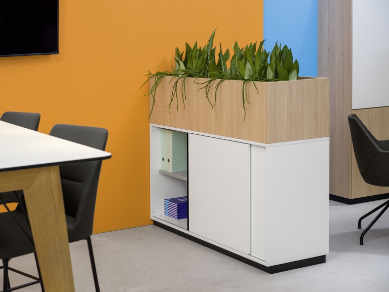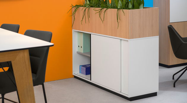 Du besitzt noch keinen Schrank im Büro? Kein Problem, hali hat genügend in seinem Sortiment. Ob Schiebetüren-, Schwebetüren-, Drehtüren-, Laden-, Rollo– oder Apothekerschränke – wir beraten dich gerne, welches System sich für deinen Bedarf besser eignet. Einheitliche Systemhöhen sowie die breite Auswahl an Farben und Materialien sorgen für ein harmonisches Gesamtbild in deinem Büro.