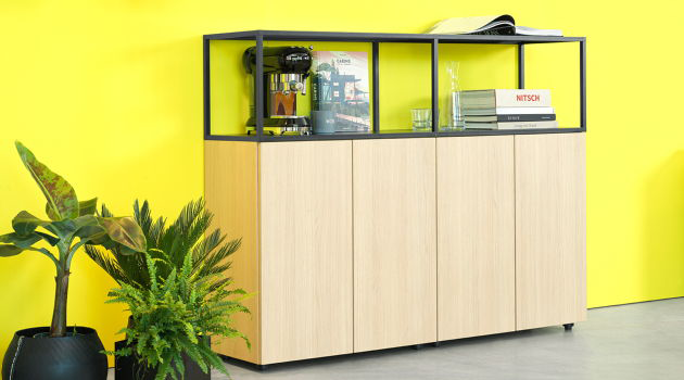 Der hochwertige und abschließbare Büroschrank kann außerdem um 180° versetzt und als platzsparendes Raumgliederungselement eingesetzt werden. So leistet jedes einzelne Regalsystem im Büro einen wichtigen Beitrag zur Raumgestaltung.