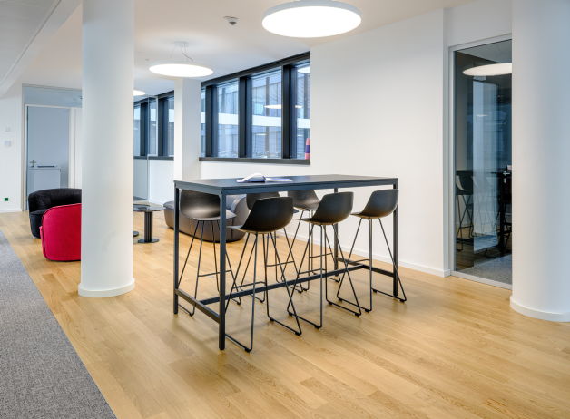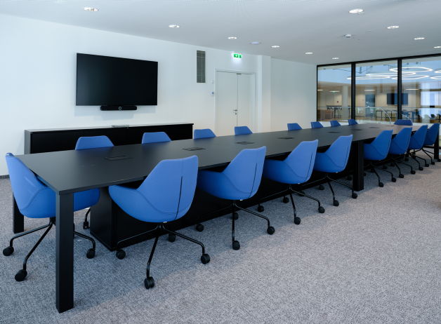 Für die großen Konferenzräume wurde der ikonische Konferenztisch s180 mit funktional integriertem Kabelmanagement gewählt. In weiteren Besprechungsräumen sorgt der höhenverstellbare m170 dafür, dass Meetings dynamischer werden und sich an jede Arbeitsweise anpassen.