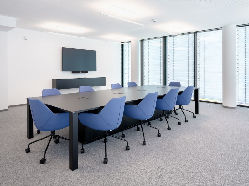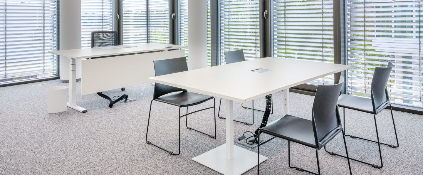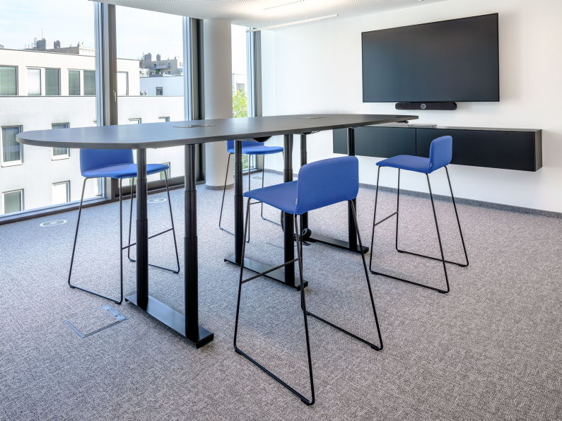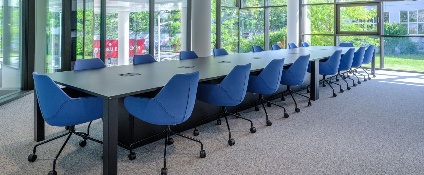 Für die großen Konferenzräume wurde der ikonische Konferenztisch s180 mit funktional integriertem Kabelmanagement gewählt. In weiteren Besprechungsräumen sorgt der höhenverstellbare m170 dafür, dass Meetings dynamischer werden und sich an jede Arbeitsweise anpassen.