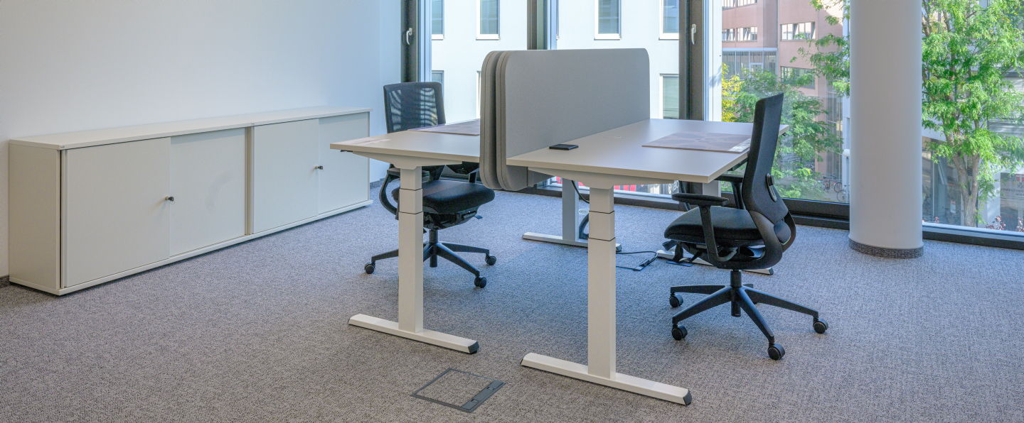 Die Büros sind großzügige, helle Arbeitsbereiche, die bewusst flexibel gestaltet wurden. Alle Arbeitsplätze sind mit höhenverstellbaren Tischen ausgestattet, inklusive Untertischladen für Schreibutensilien und Post-its. Fein abgestimmte Akustikelemente schaffen Ruhe, ohne die Offenheit des Raums zu verlieren. Schiebetürschränke auf niedriger Höhe gliedern Zonen, ohne Grenzen zu ziehen. Die klare, übersichtliche Gestaltung der Räume lenkt den Blick auf das Wesentliche: konzentriertes Arbeiten.