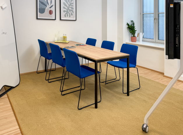 Ein Raum ist mit einem s600 Meetingtisch ausgestattet und bietet den passenden Rahmen für strukturierte Meetings und gemeinsame Entscheidungsprozesse.
