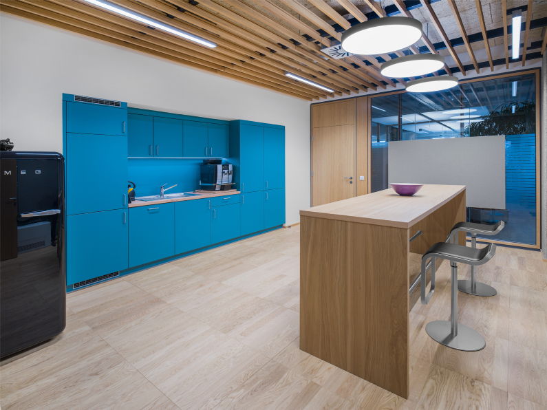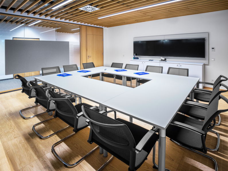 Die kleineren und größeren Meetingräume sind mit flexiblen Arbeitstischen und bequemen Besucherstühlen ausgestattet. Und auch der Meeting-Point in der Mitarbeiterküche kann für Gespräche genutzt werden.