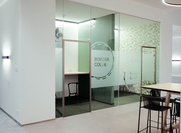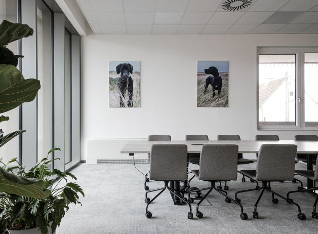 Die sieben Meetingräume des Unternehmens sind, je nach Größe, unterschiedlich ausgestattet. Die drei größten Räume sind mit dem Besprechungstisch m170 ausgestattet. Dieser lässt sich durch seine Steh-Sitz-Funktion in kurzer Zeit umfunktionieren und bringt dadurch „Bewegung“ in jede Besprechung. Der Wechsel der Position fördert auch die Konzentration.