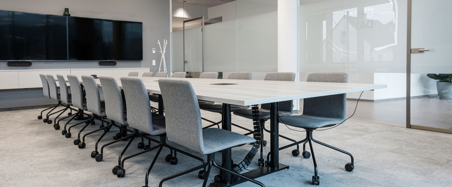Die sieben Meetingräume des Unternehmens sind, je nach Größe, unterschiedlich ausgestattet. Die drei größten Räume sind mit dem Besprechungstisch m170 ausgestattet. Dieser lässt sich durch seine Steh-Sitz-Funktion in kurzer Zeit umfunktionieren und bringt dadurch „Bewegung“ in jede Besprechung. Der Wechsel der Position fördert auch die Konzentration.